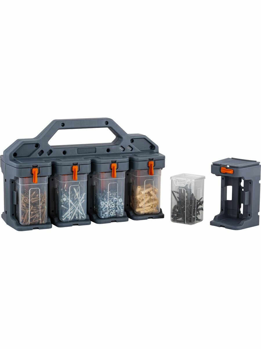 Органайзер Expert малый со съемными прозрачными боксами для строительных аксессуаров метизов гвоздей 4 лотка модуля с подставкой и крепежом на стену