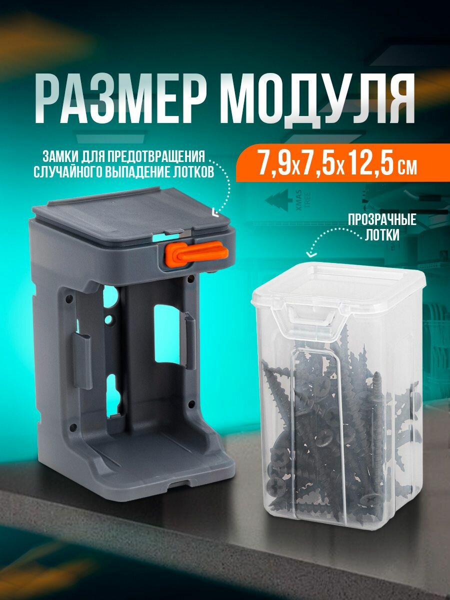 Органайзер Expert универсальный со съемным прозрачным боксом для строительных аксессуаров метизов гвоздей 1 лоток модуль с подставкой, крепеж на стену