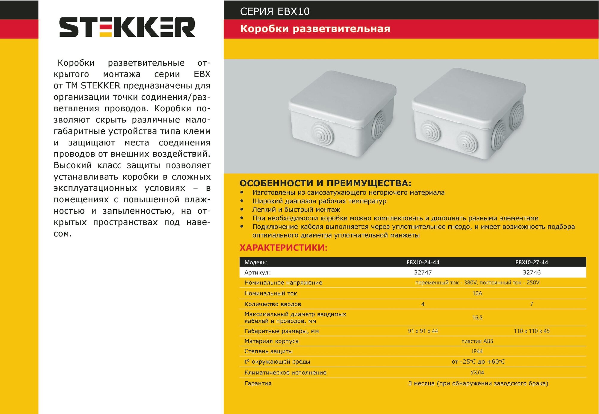 Коробка разветвительная, 75*75*42мм, 250/380В, 4 вывода, STEKKER EBX10-24-44