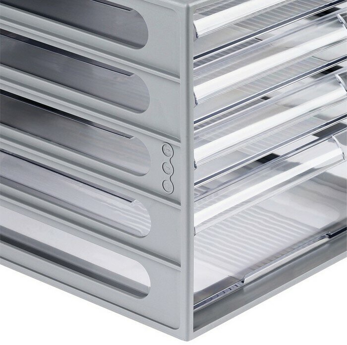 Лоток для бумаг Бокс с выдвижными лотками Стамм, серый 4 прозрачных лотка ВЛ53