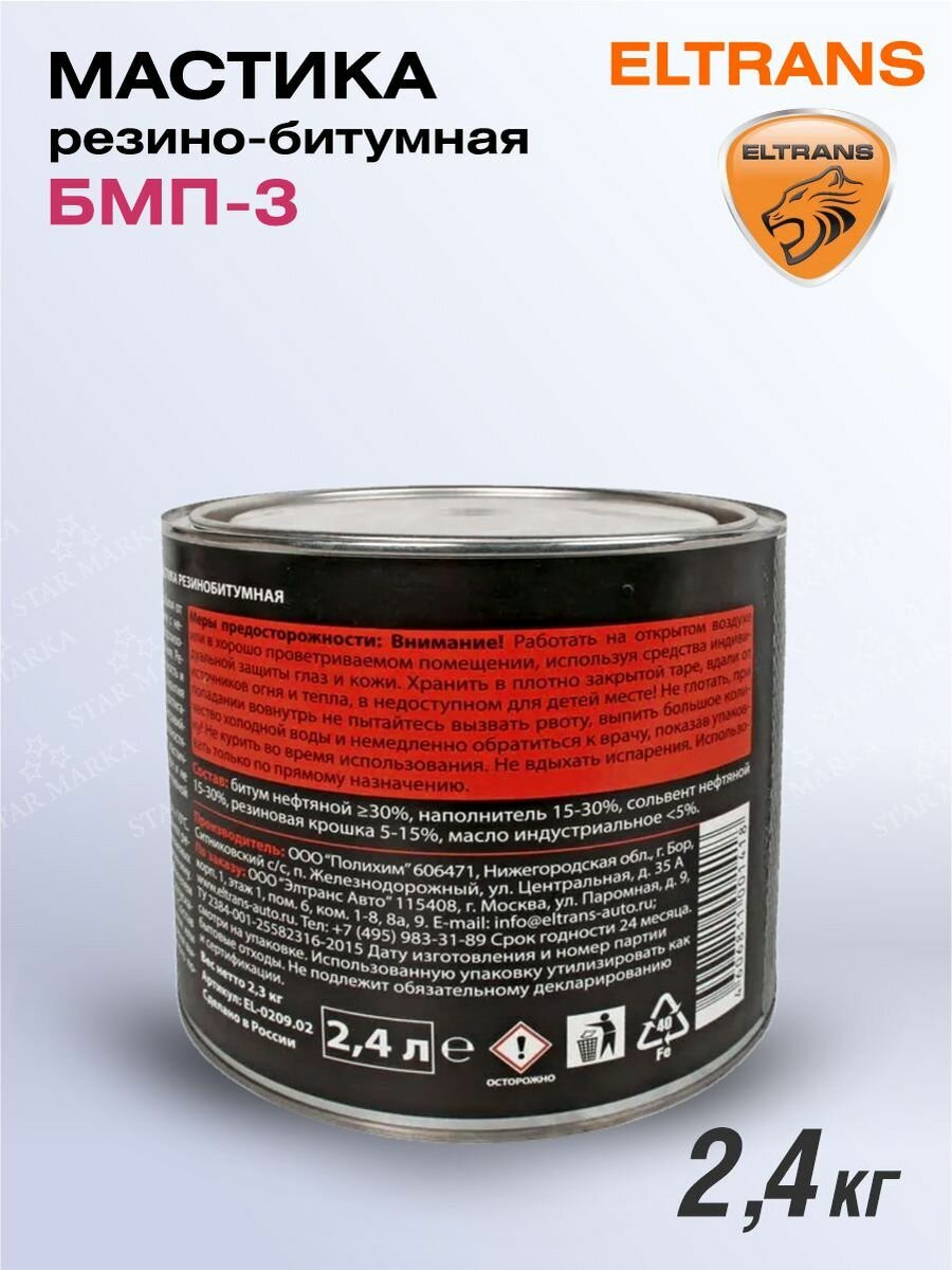 ELTRANS EL-0209.02 Антикоррозийная Мастика ELTRANS EL-0209.02 БПМ-3 2,3 кг резинобитумная