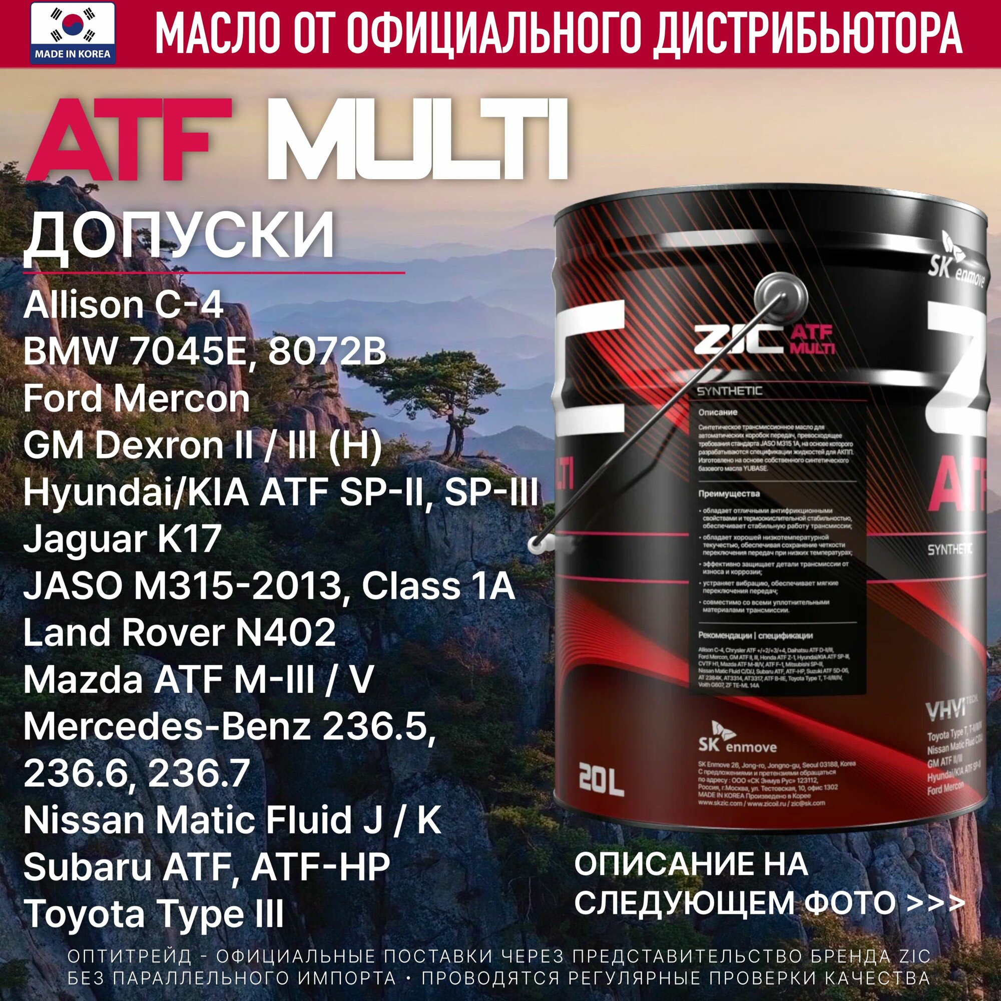 ZIC 192628 ZIC ATF Multi (20L)_жидкость гидрав.! для АКПП\ Allison C-4,Daihatsu ATF D-II/III, Ford Mercon 1шт