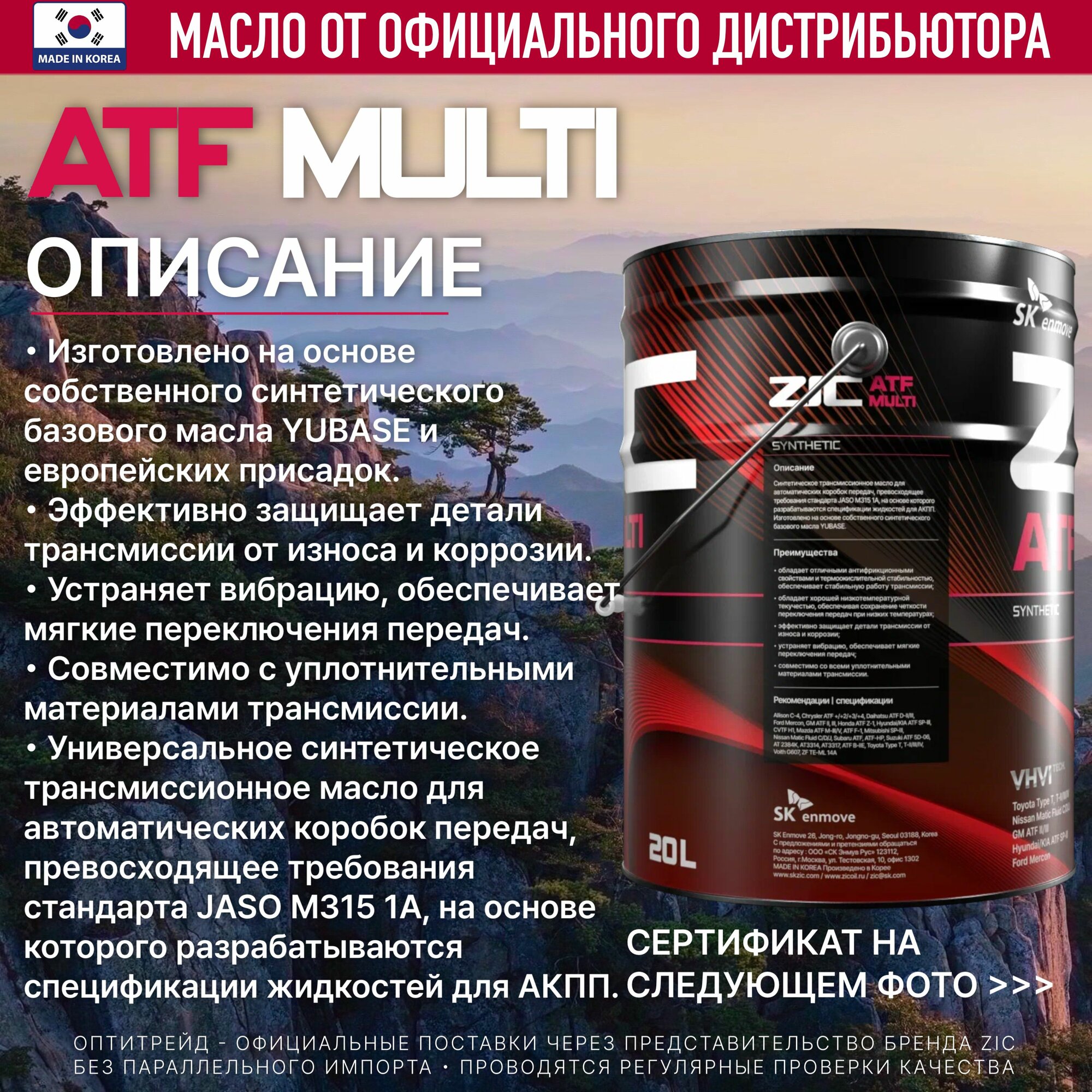 Масло ZIC ATF Multi трансмиссионное 20 л