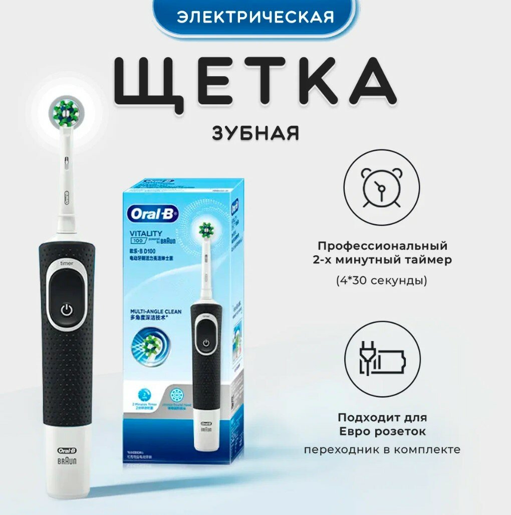 Электрическая зубная щетка Oral-B Vitality CrossAction D100.413.1, черная , CN, переходник в комплекте