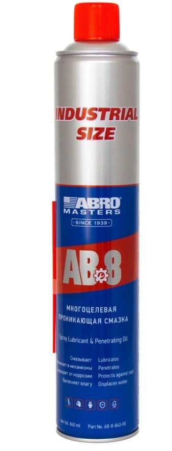Ниже Вы можете прочитать отзывы на Смазка-спрей многоцелевая проникающая 840 мл.ABRO MASTERS, AB8840RE ABRO AB-8-840-RE, ознакомится с подробными характеристиками, посмотреть интересные обзоры и фотографии на Смазка-спрей многоцелевая проникающая 840 мл.ABRO MASTERS, AB8840RE ABRO AB-8-840-RE.