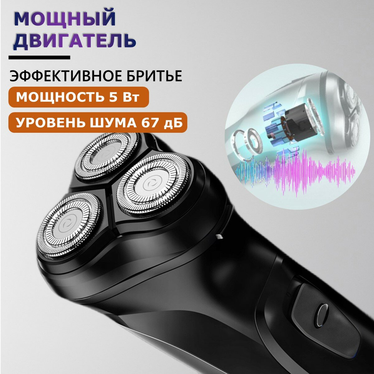 Электробритва BlackStone-C Black, 5 Вт, роторная, 3 головки, сухое бритьё, от АКБ