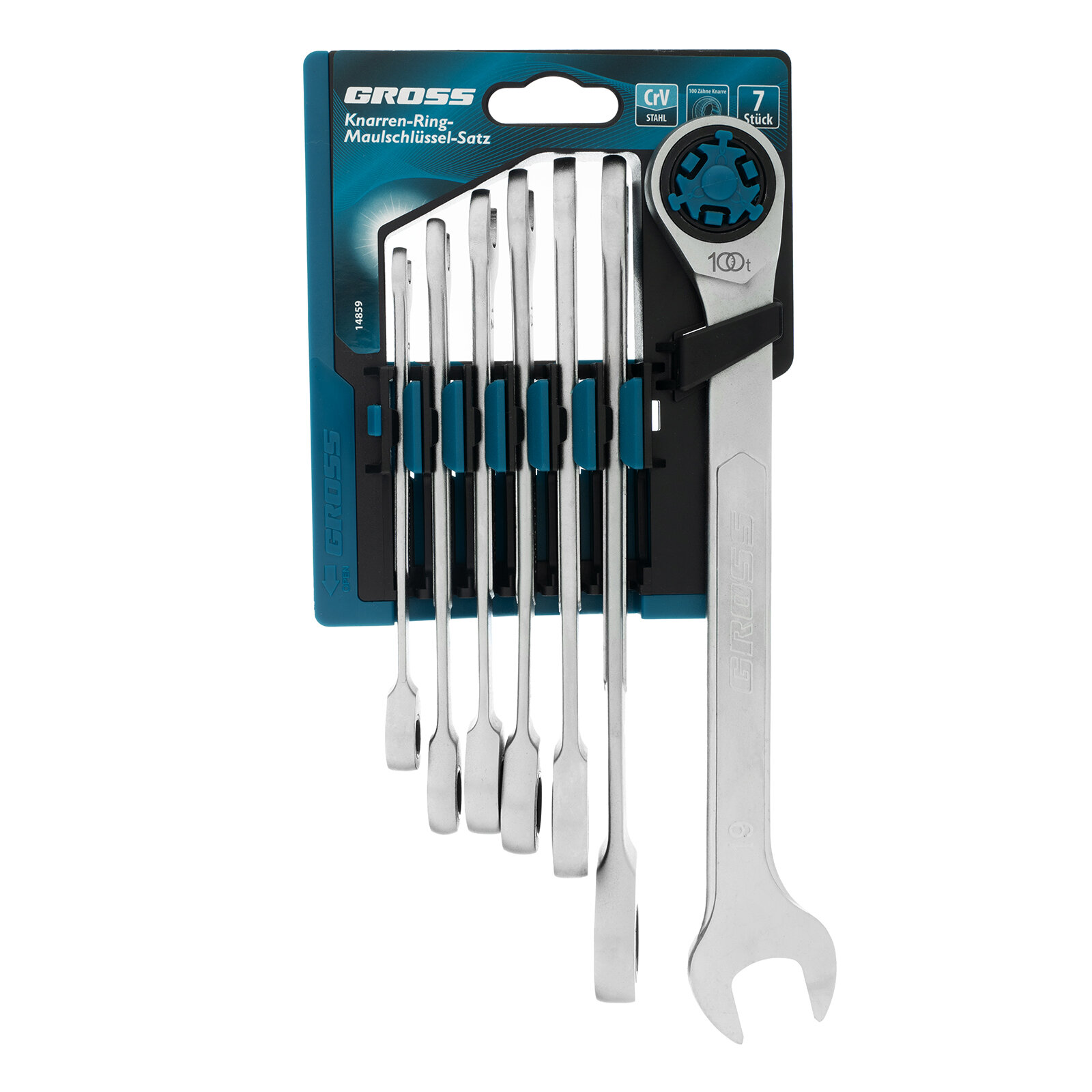 Набор ключей комбинированных трещоточных, количество зубьев 100, СRV, 7 шт, 8-19 мм Gross, ( 14859 )