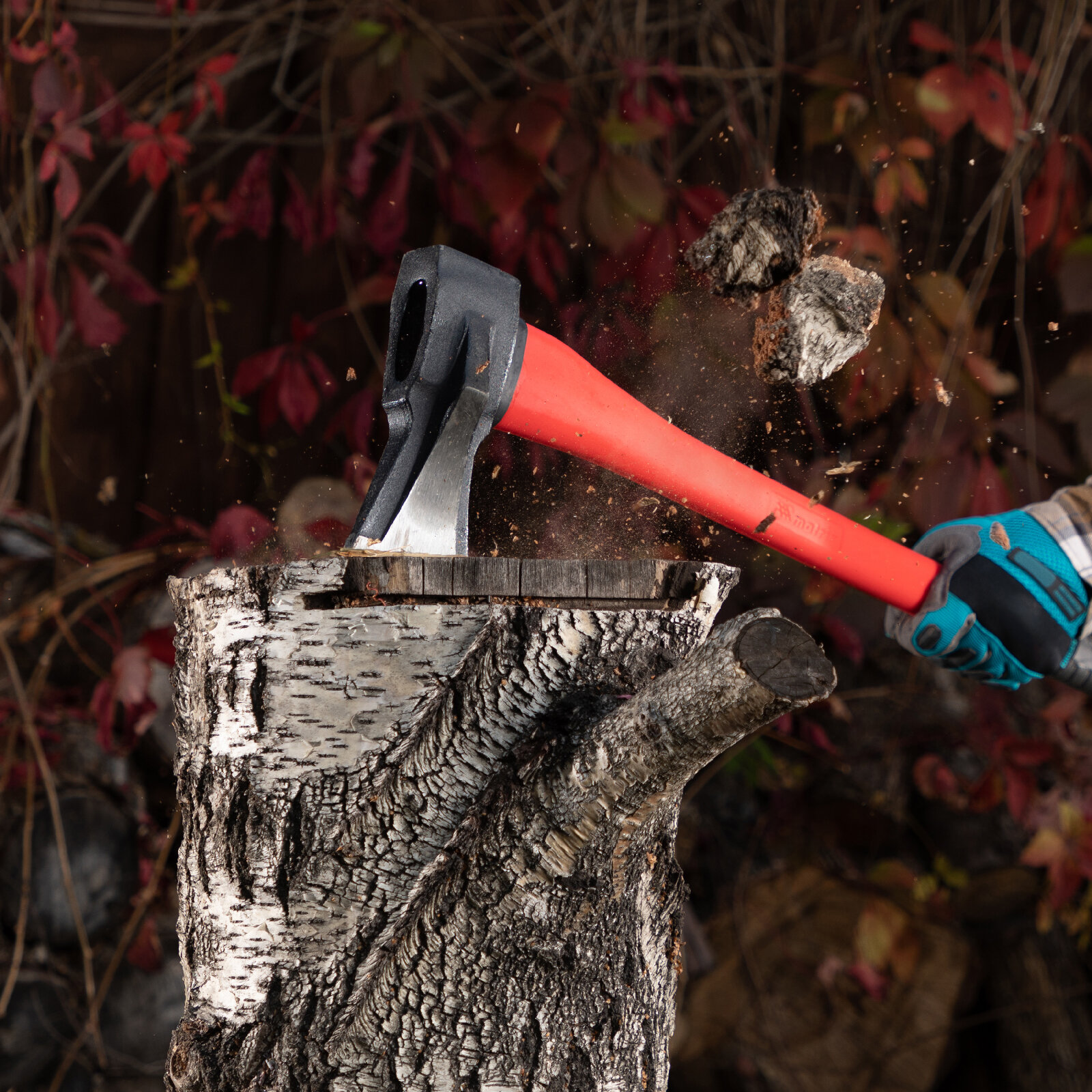 | Плюсы: | Отличный хват, не вязнет, пни разлетаются! |