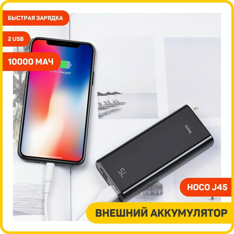 Портативный аккумулятор HOCO J45 Elegant shell, 2A, 10000 мА⋅ч, черный, дисплей