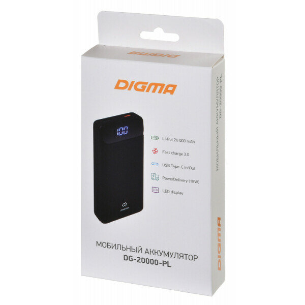 Мобильный аккумулятор DIGMA Power Delivery DG-20000-PL-BK QC 3.0 PD(18W) черный (dg-20000-pl-bk)