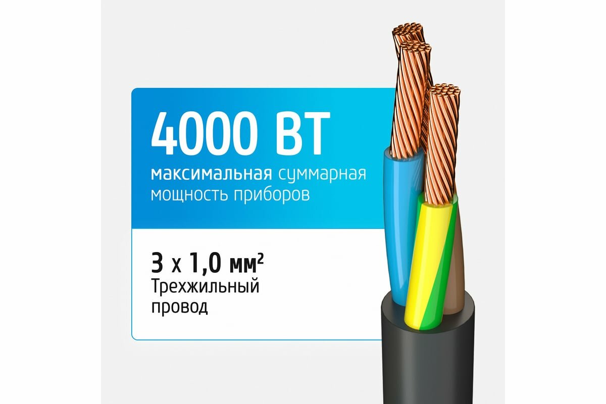 | Плюсы: | Качество хорошее, кабель толстый с большим сечением. Можно подключать технику высокой нагрузки, например кондиционер. |