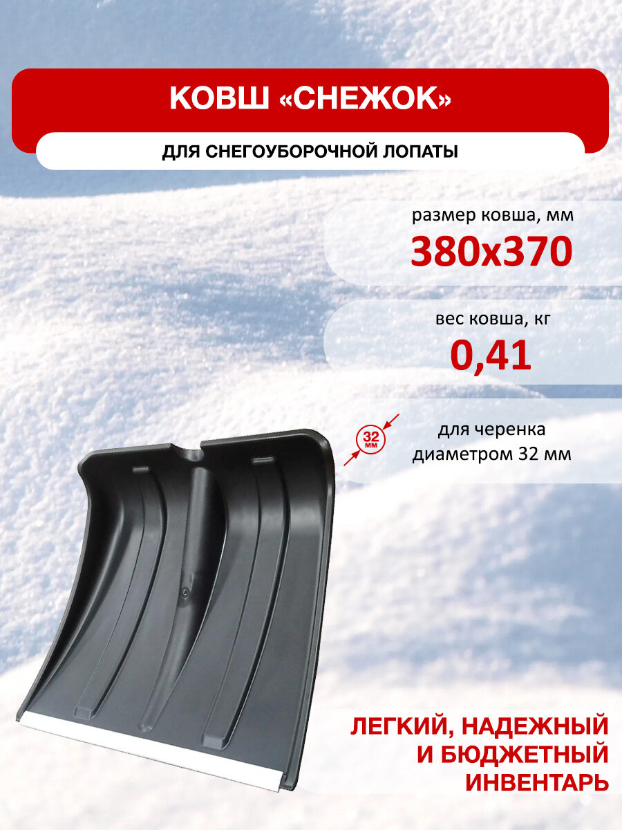 Ковш лопаты Снежок 380х370мм с алюминиевой планкой