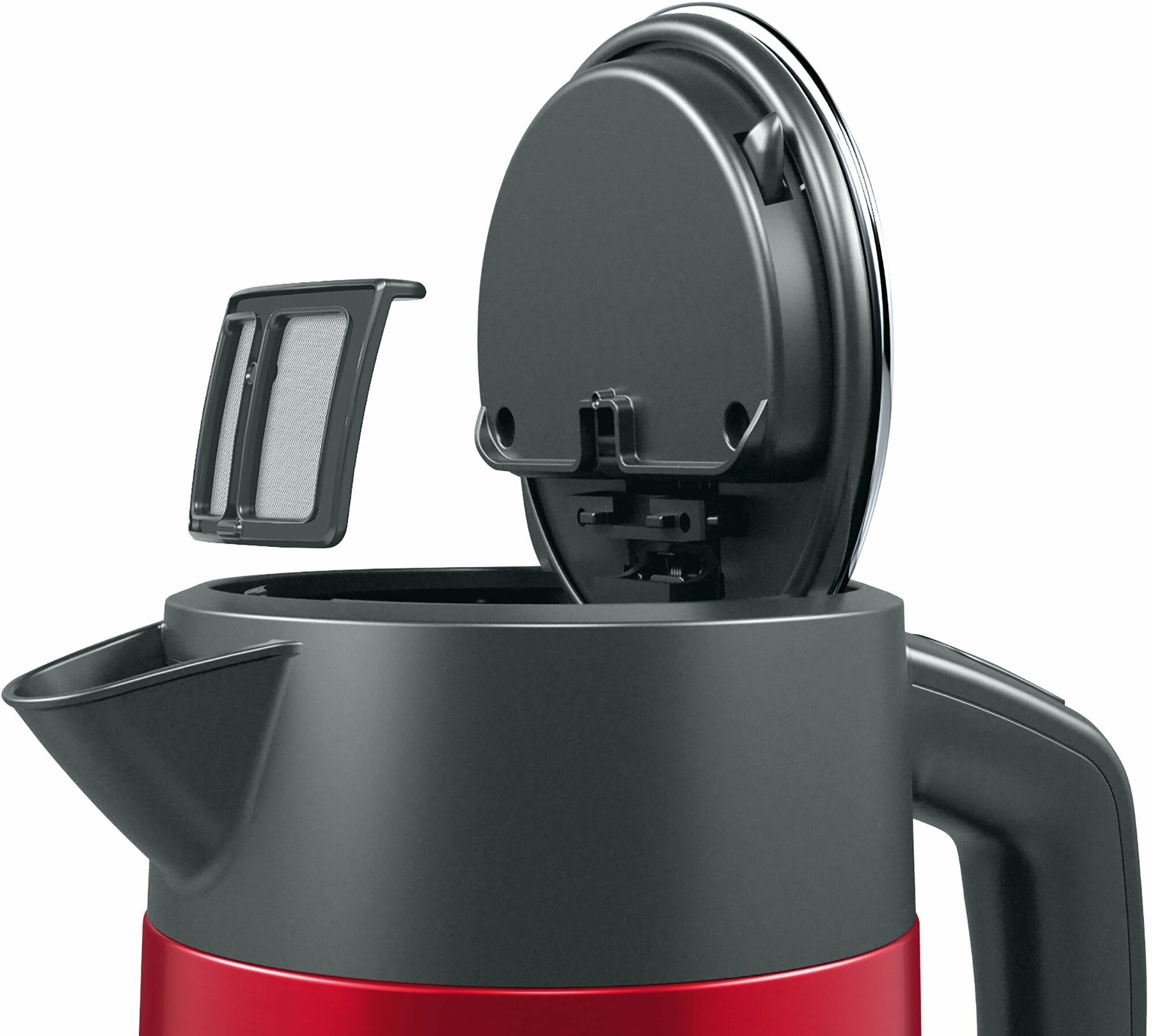 Чайник электрический BOSCH TWK4P434, 2400 Вт, 1.7 л, металл/пластик, фильтр от накипи, автоотключение, красный