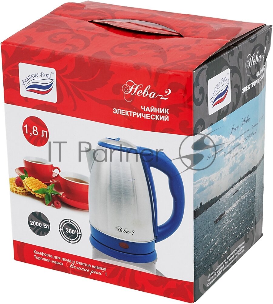 Чайник электрическикй великие реки Нева-2, нерж. сталь в белом пластике 1236988