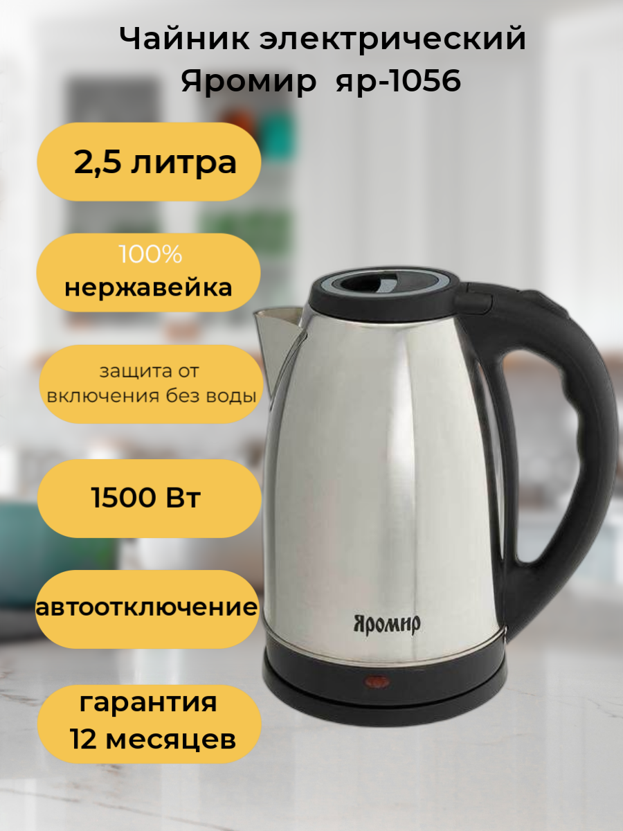 Электрический чайник яромир ЯР-1056 нержавейка 1500Вт 2,5л