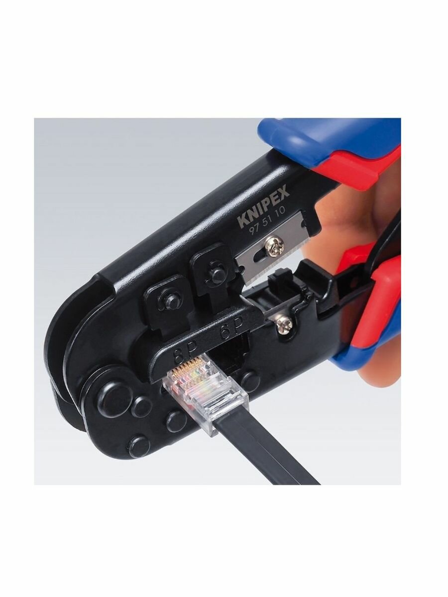 Пресс-клещи для штекеров Knipex типа RJ (Western) KN-975110SB, 2 гнезда, RJ 11/12 (6-pin), RJ 45 (8-pin), 190 мм, двухкомпонентные рукоятки