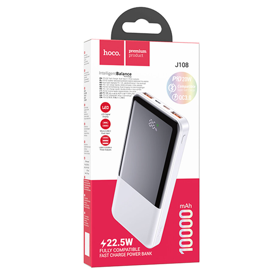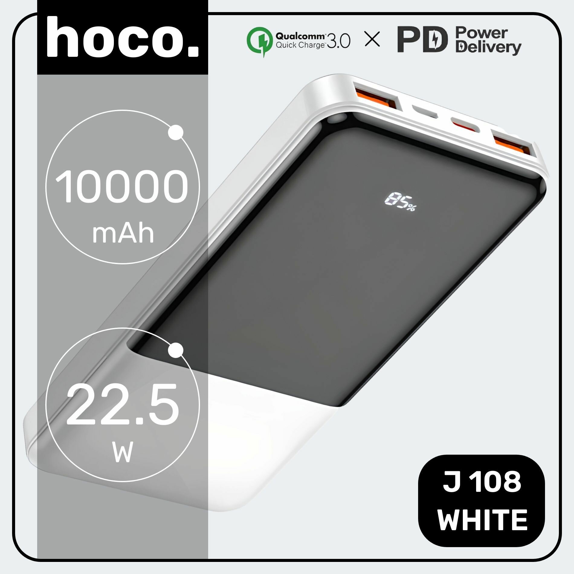 Универсальный Доп. Аккумулятор 10000mAh, J108, HOCO, выход: 1 USB (22.5W)+1 PD (18W), белый