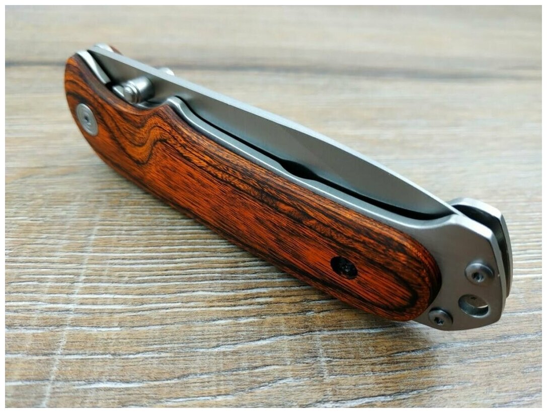 Нож складной Stinger, клинок из нержавеющей стали 91 мм, рукоять из стали и дерева коричневого цвета (FK-8236)