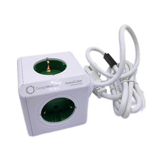 Купить Сетевой удлинитель (фильтр) Allocacoc/DesignNest PowerCube Extended USB RED1402GN/DEEUPC, 4 розетки, 2 USB, провод 1,5 метра, крепление в комплекте, зеленый