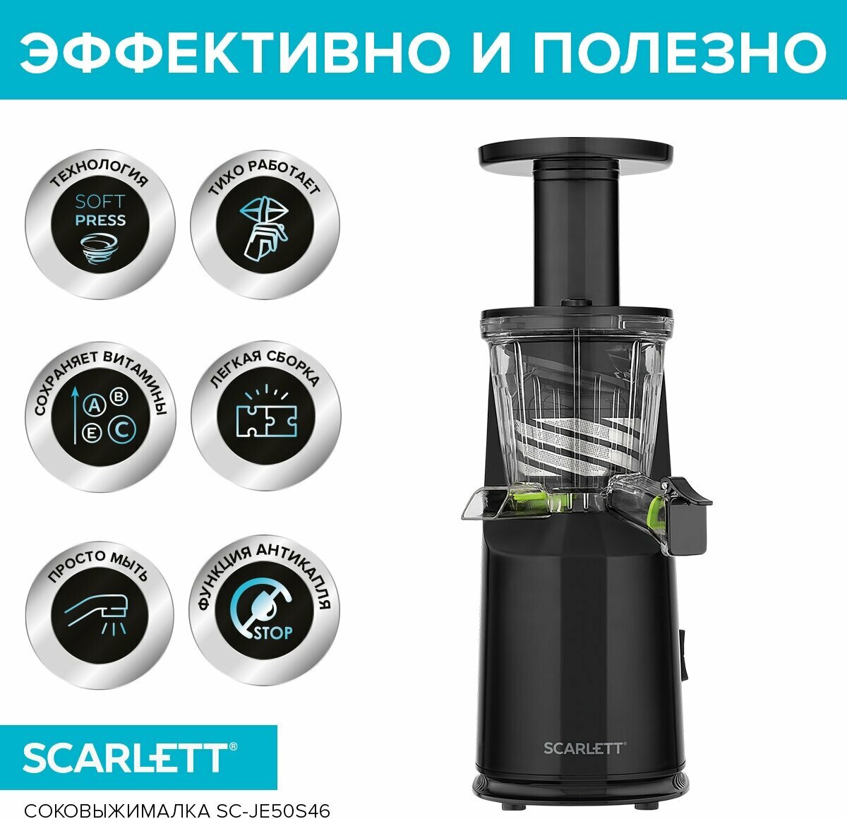Соковыжималка SCARLETT SC-JE50S46, черная