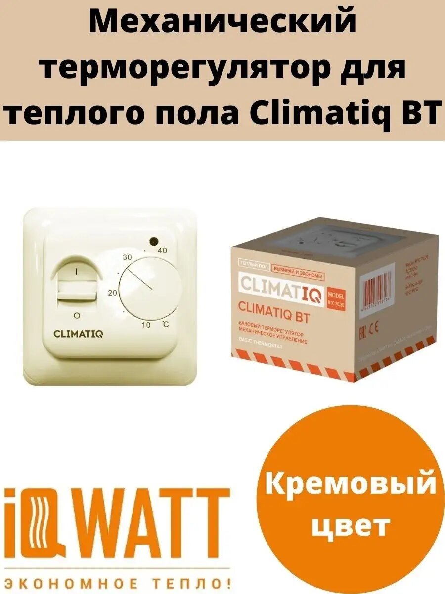 Терморегулятор CLIMATIQ IQWATT BT, для теплого пола, ручной, проводной, бежевый