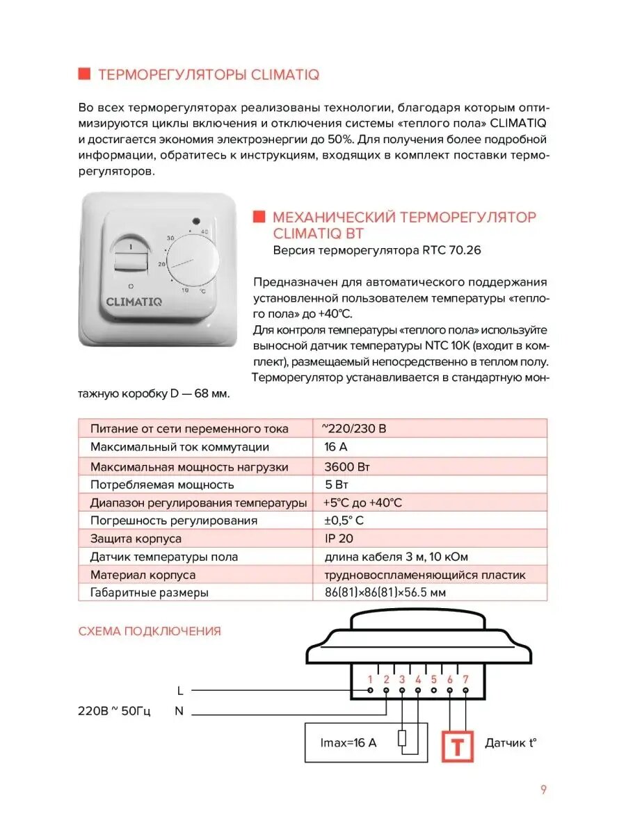Терморегулятор механический Climatiq BT ручной