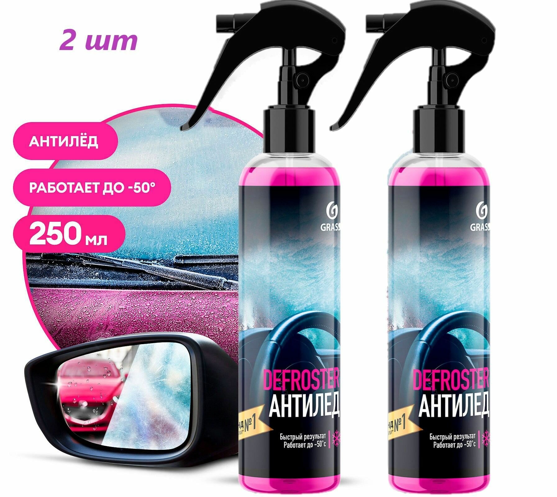 GRASS 151250 Размораживатель стекол 250мл - Defroster: растворяет лед со стекол, фар, зеркал и дворников, предотвращает образование наледи, размораживает замки, безопасен для ЛКП, спрей