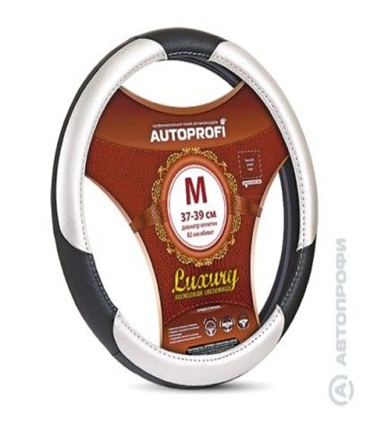 AUTOPROFI AP1010BKSILVERM Оплётка руля Luxury кожа, 3 рельефные вставки (черныйсеребро) (М)
