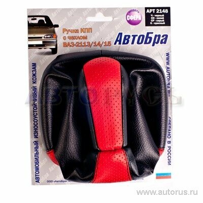 2148-К АвтоБра Ручка КПП 2113-15 Сфера кожзам+чехол АвтоБра красная