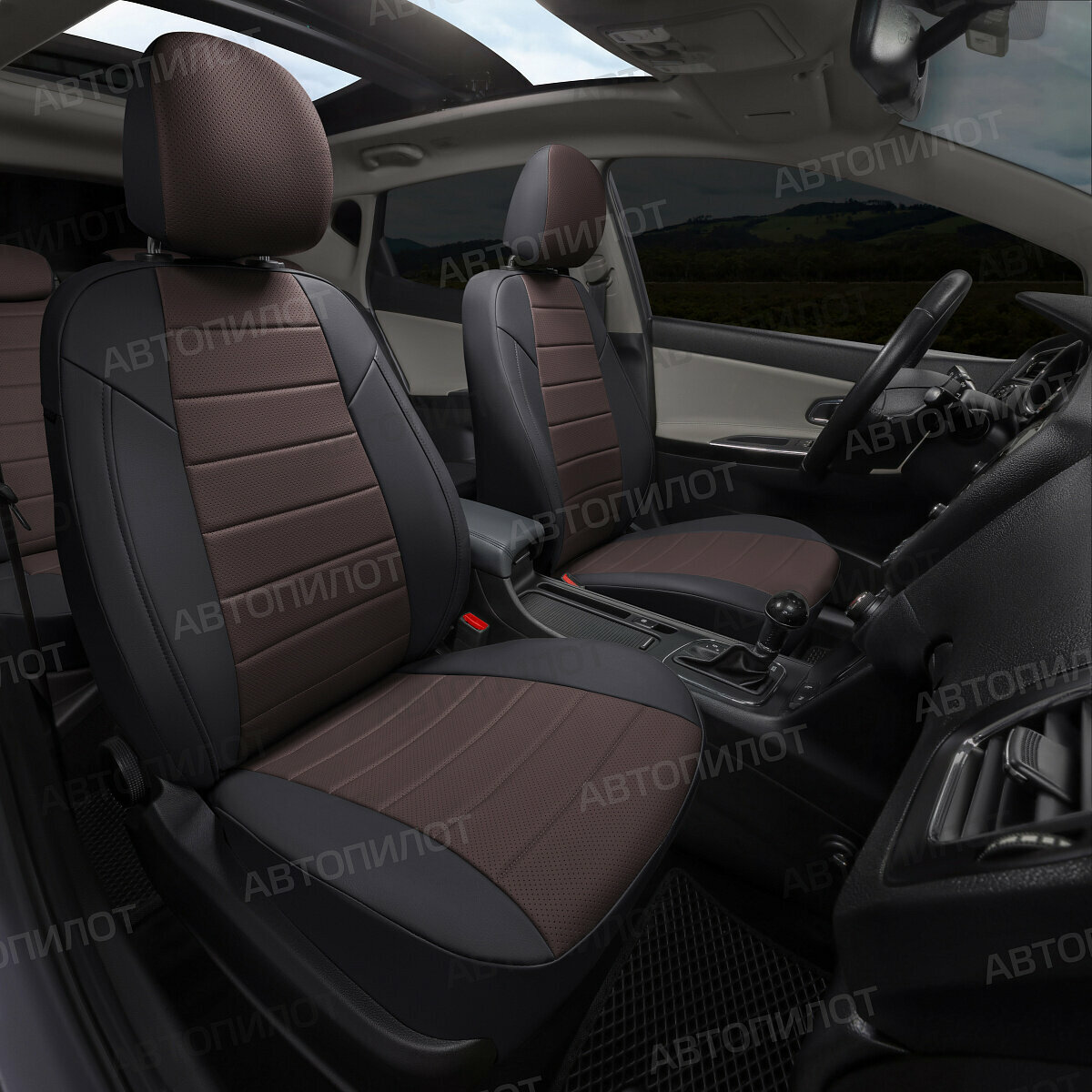 Комплект чехлов Автопилот Экокожа Chevrolet Cobalt с 11г. / Ravon R4 16г. Черный + Темно-коричневый