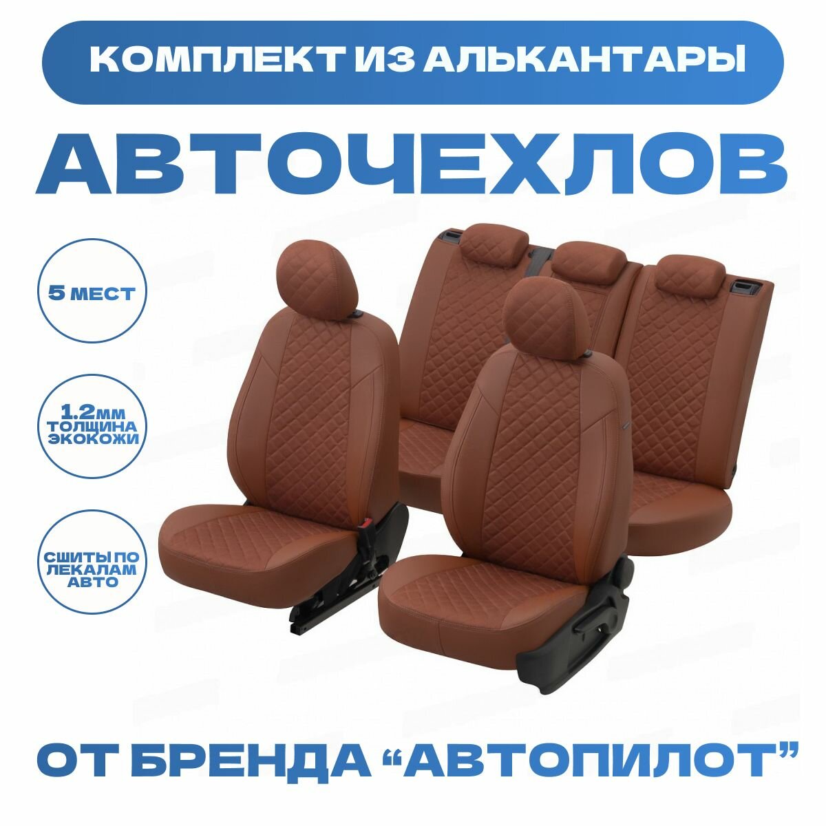 Купить Комплект чехлов Автопилот Алькантара ромб Hyundai Solaris I Sd / KIA Rio III (40/60) с 10-17г. Коричневый +