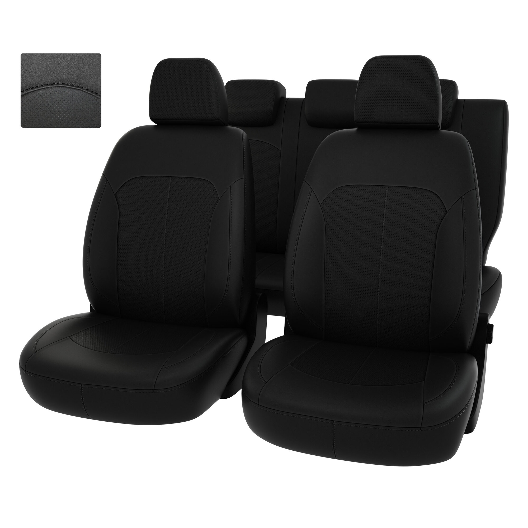 Комплект каркасных чехлов 5D CarFashion Consul Plus, чёрные, отстрочка серая