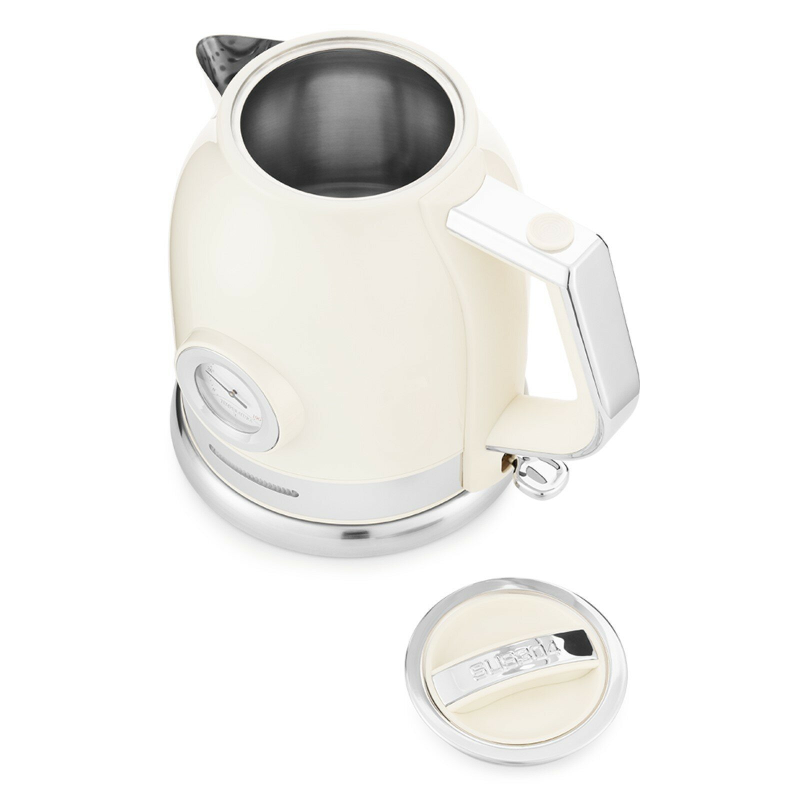 Удобно смотреть температуру нагрева. Стильный дизайн, термометр в стиле old-fashion. Даже когда сильно нагибаешь чайник для налива, вода льется равномерно за счет того, что есть внутренняя насадка на носике, то есть уменьшается риск разлива. |