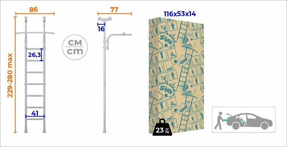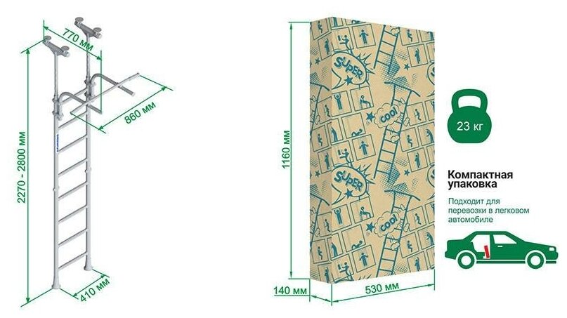| Отзыв: | Когда потребовалось перевезти - отсоединил верхнюю часть (турник), а вот середину обратно разъединить уже не вышло, "слиплось" очень крепко. Ничего, и так влезло в машину. |