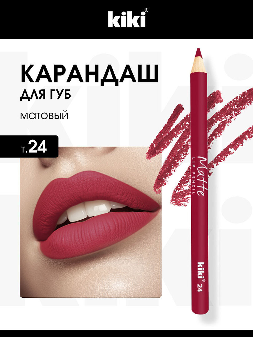 Карандаш для губ kiki MATTE тон 24 красный, водостойкий косметический, лайнер, матовый насыщенный цвет, lip pencil