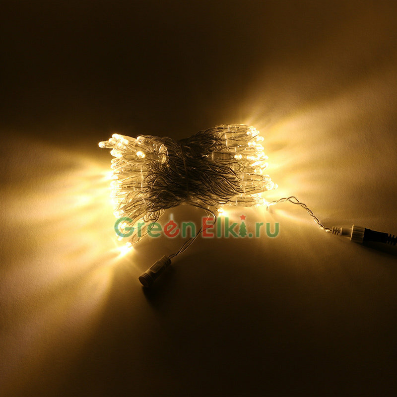 Гирлянда Нить с Колпачком 10м Тепло-Белая 24В, 100 LED, Провод Прозрачный ПВХ, IP65 (Laitcom)