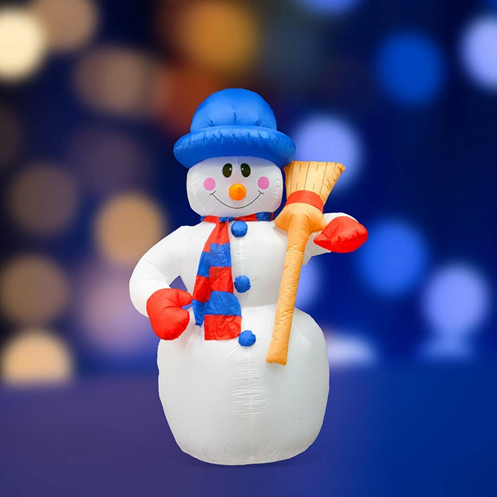 Купить Надувная фигура NEON-NIGHT Снеговик с метлой, 180 см, белый/синий/красный