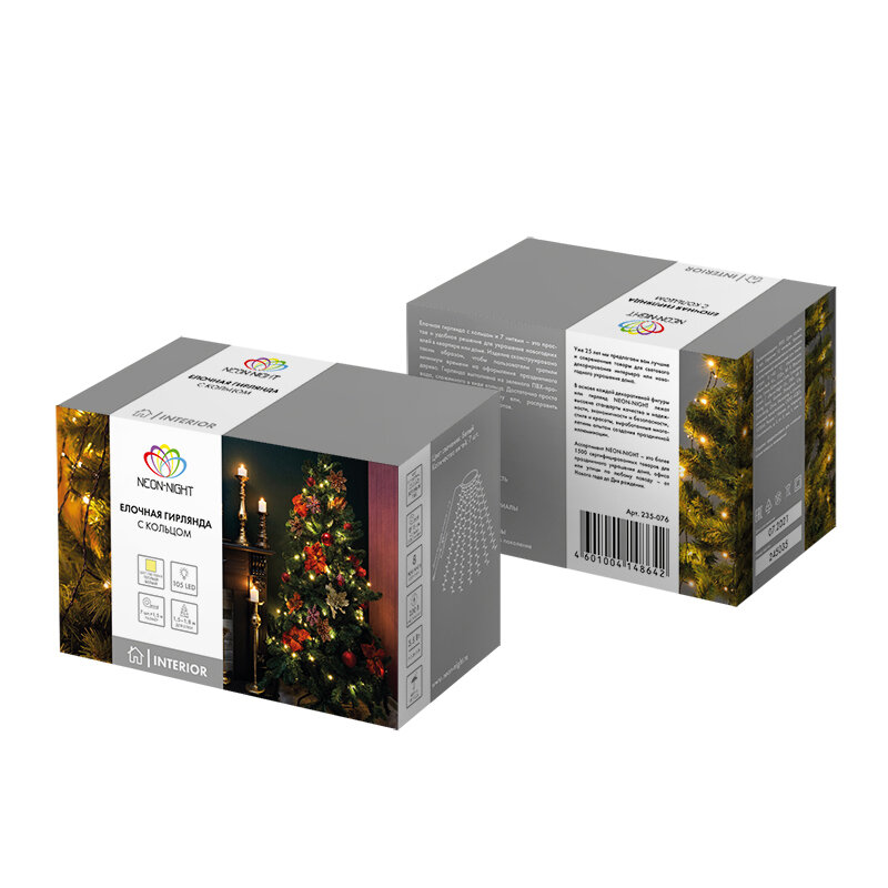 Гирлянда елочная с кольцом 7 нитей по 1.5м LED тепл. бел. не соединяется | код 235-076 | Neon-Night ( 1шт. )