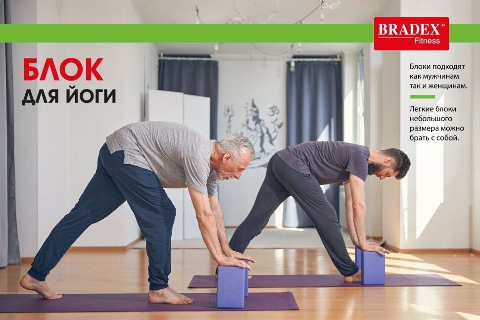 Блок для йоги BRADEX, кирпич для фитнеса и гимнастики, опорный кубик для растяжки, 23х15х7,5 см, фиолетовый
