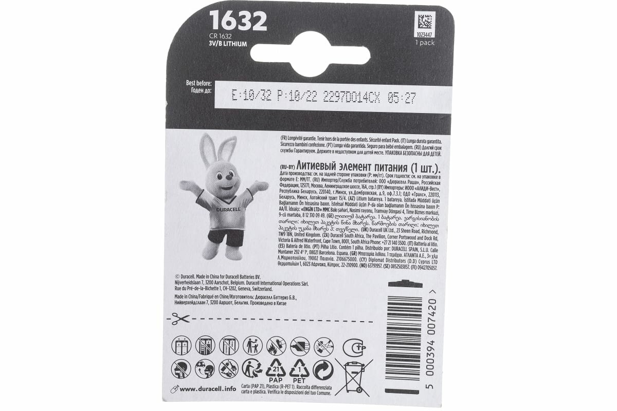 Батарея Duracell Lithium 1632-1BL CR1632 (1шт) 5007988 .