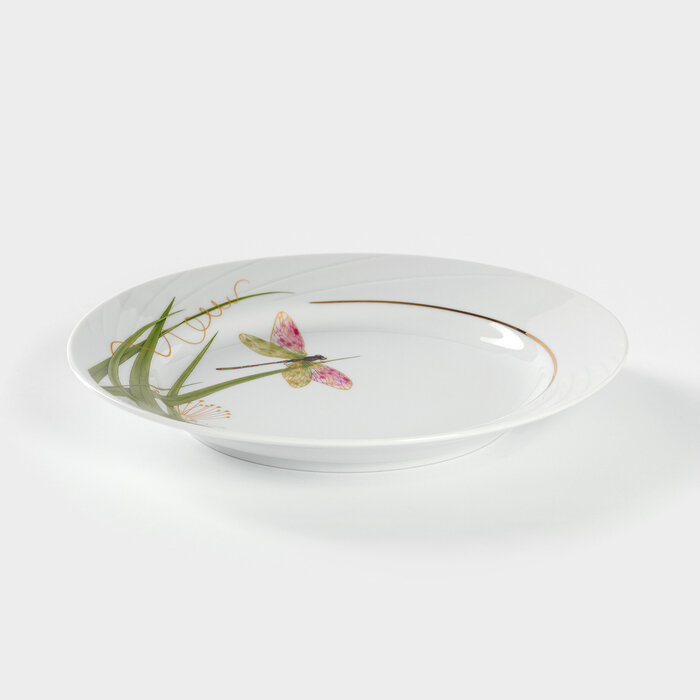 Тарелка фарфоровая «Стрекоза», d=20 см, белая