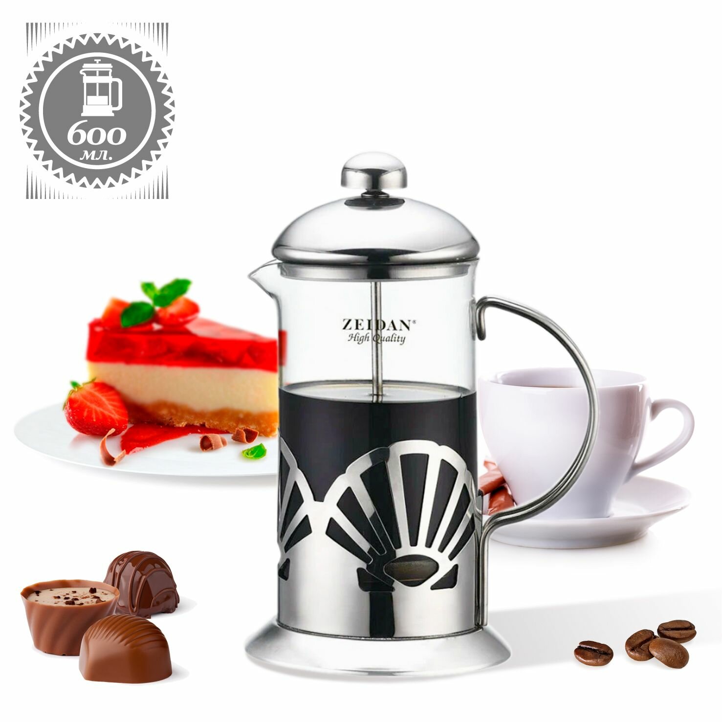Френч-пресс ZEIDAN, 600 мл.