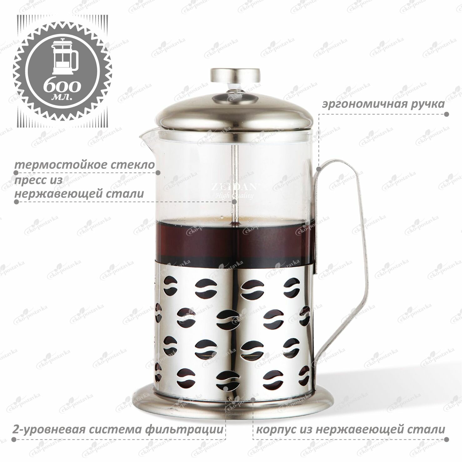 Френч-пресс ZEIDAN 600 мл из термостойкого стекла, заварник для чая и кофе