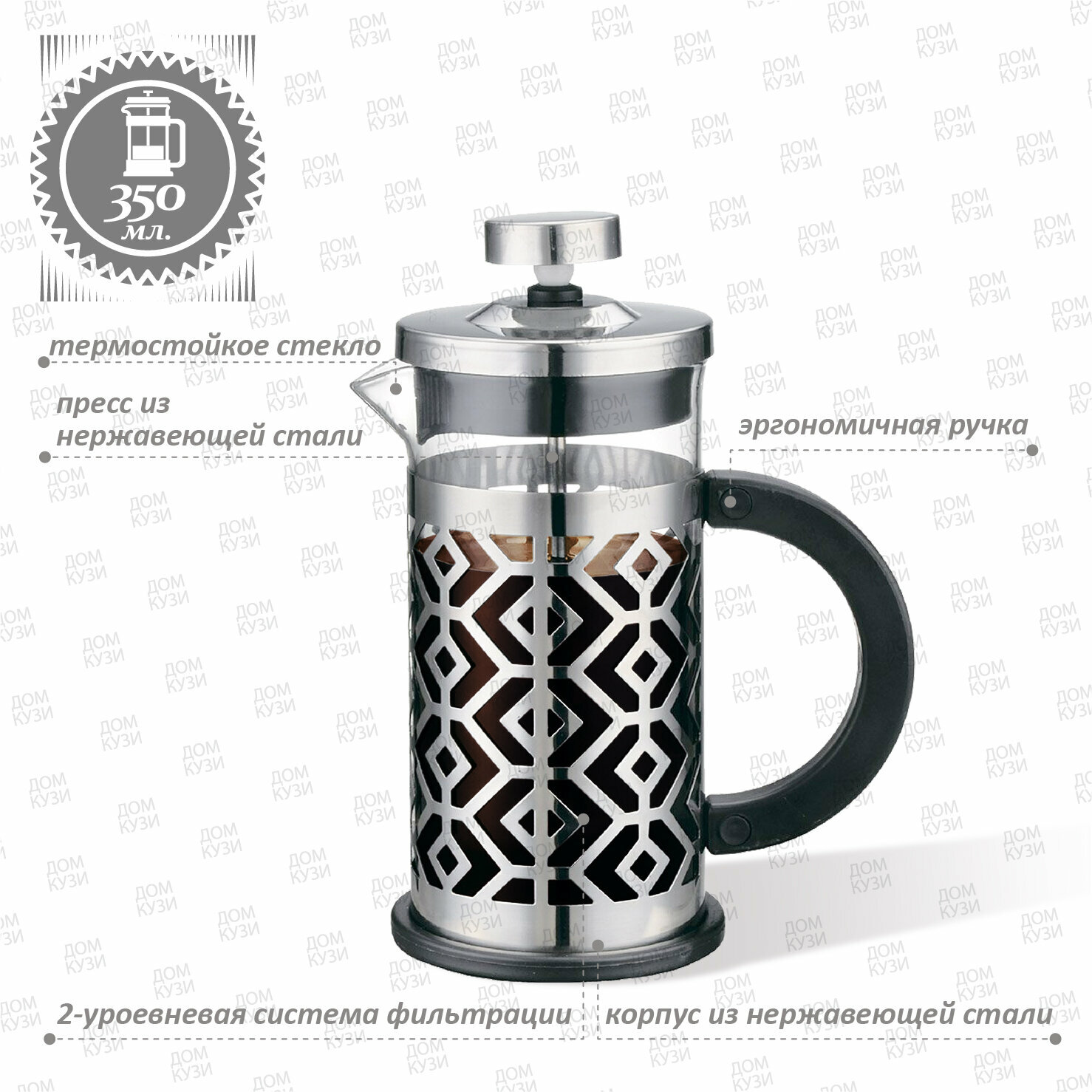 Френч-пресс стеклянный 350 мл прозрачный Zeidan из нержавеющей стали, заварник для чая и кофе из термостойкого стекла