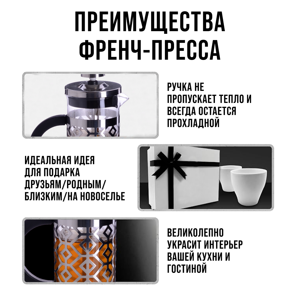 Чайник заварочный френч-пресс Mayer&Boch / Майер&Бош МВ28851 нержавеющая сталь, стекло, ненагревающаяся ручка, с фильтром 0.35л / посуда для чая