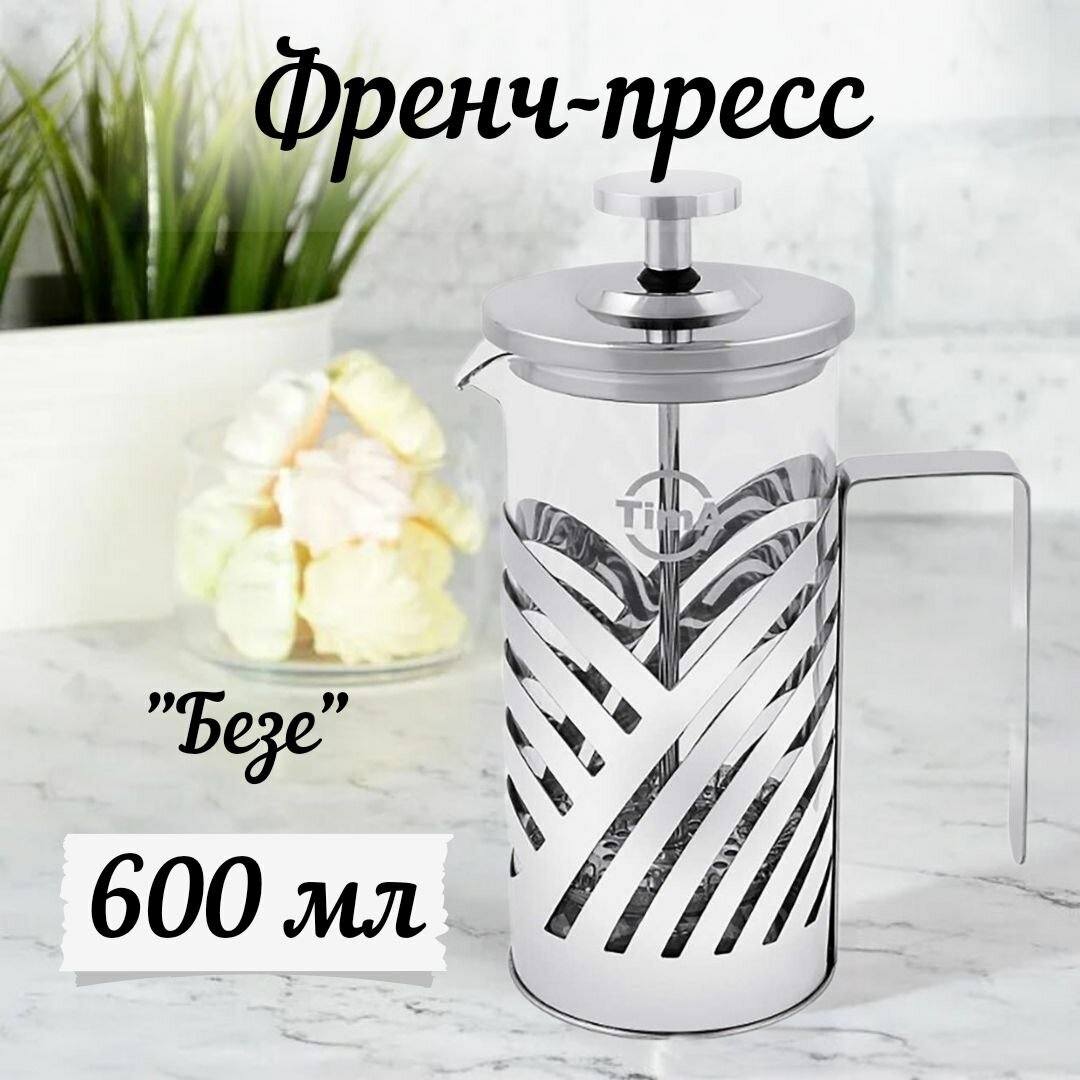 TIMA Френч-пресс "безе" 600мл. нержавеющая сталь, боросиликатное стекло. FB-600 интересное: