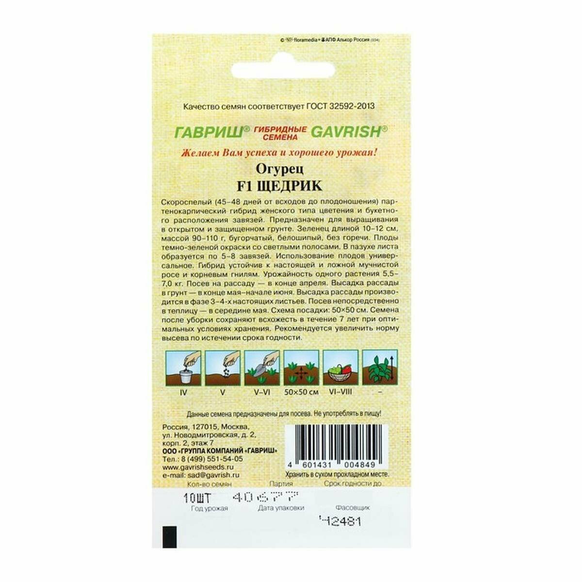 Семена Гавриш огурец Щедрик F1, 10шт