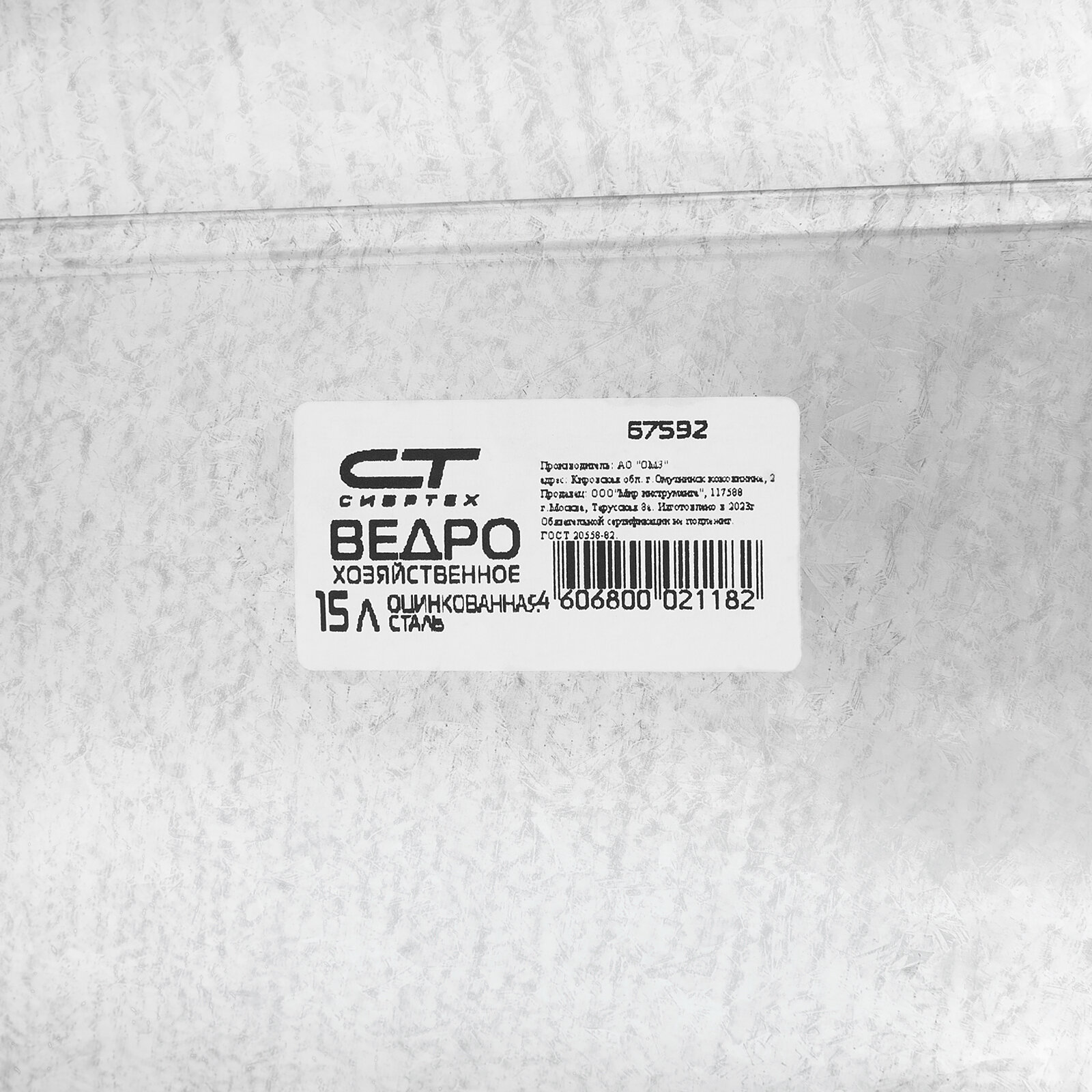 Ведро, 15 л, оцинкованное Россия Сибртех ( 67592 )
