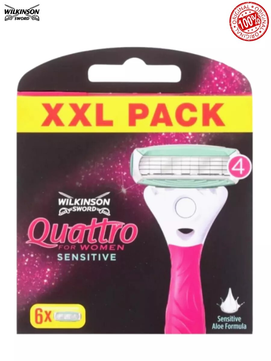 Wilkinson Sword / Schick Quattro for Women Sensitive / Сменные кассеты для женской бритвы Quattro (4 шт)