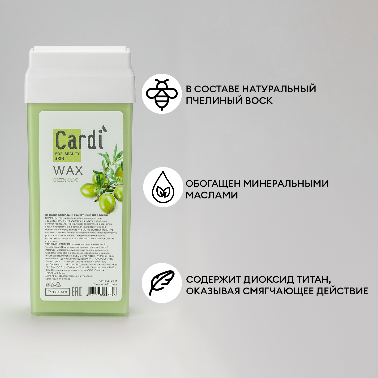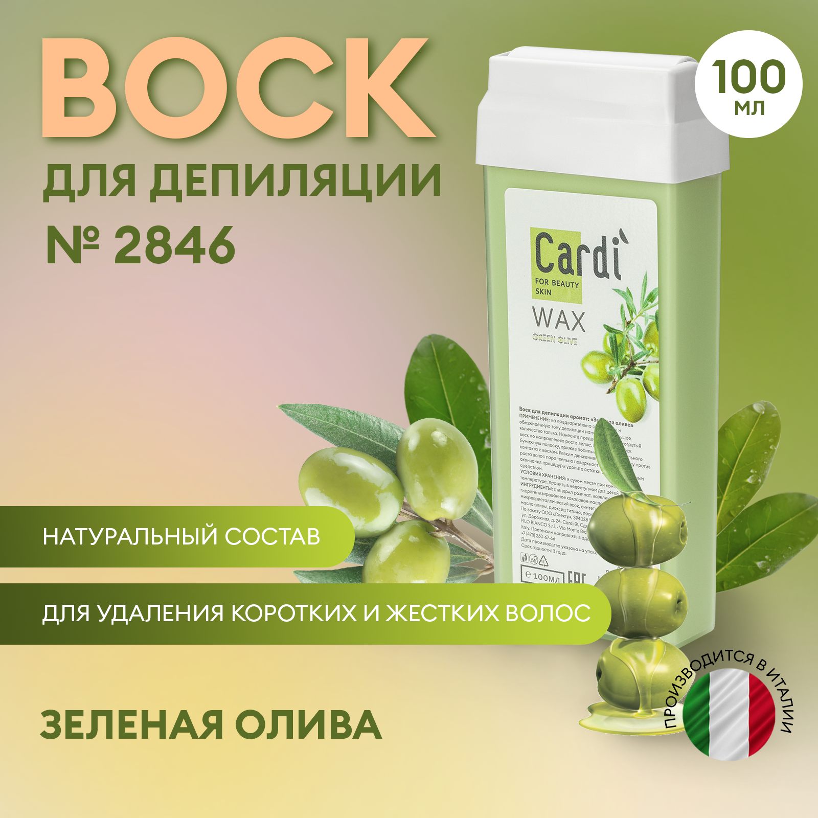Купить Воск для депиляции Cardi (аромат: Зеленая олива), 100 мл